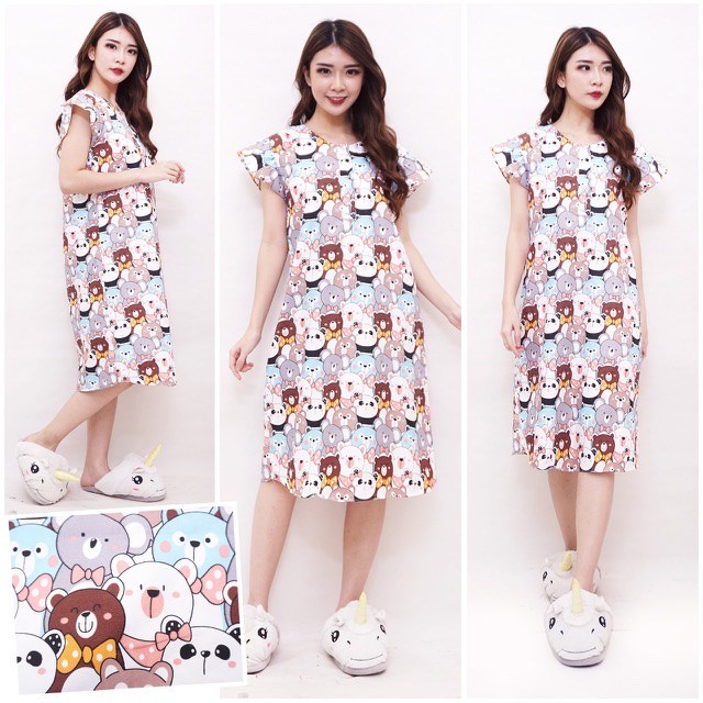 (1KG MUAT 6PCS) PIYAMA PENDEK MODEL DASTER MOTIF KARAKTER KARTUN BAHAN KATUN JEPANG ASLI
