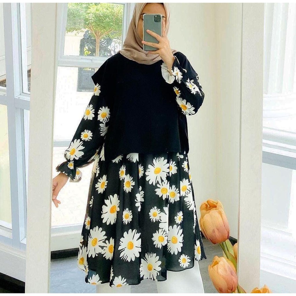 ( 1KG MUAT 5PCS ) OVALL RAYON GAMIS MOTIF UNIQLO PREMIUM