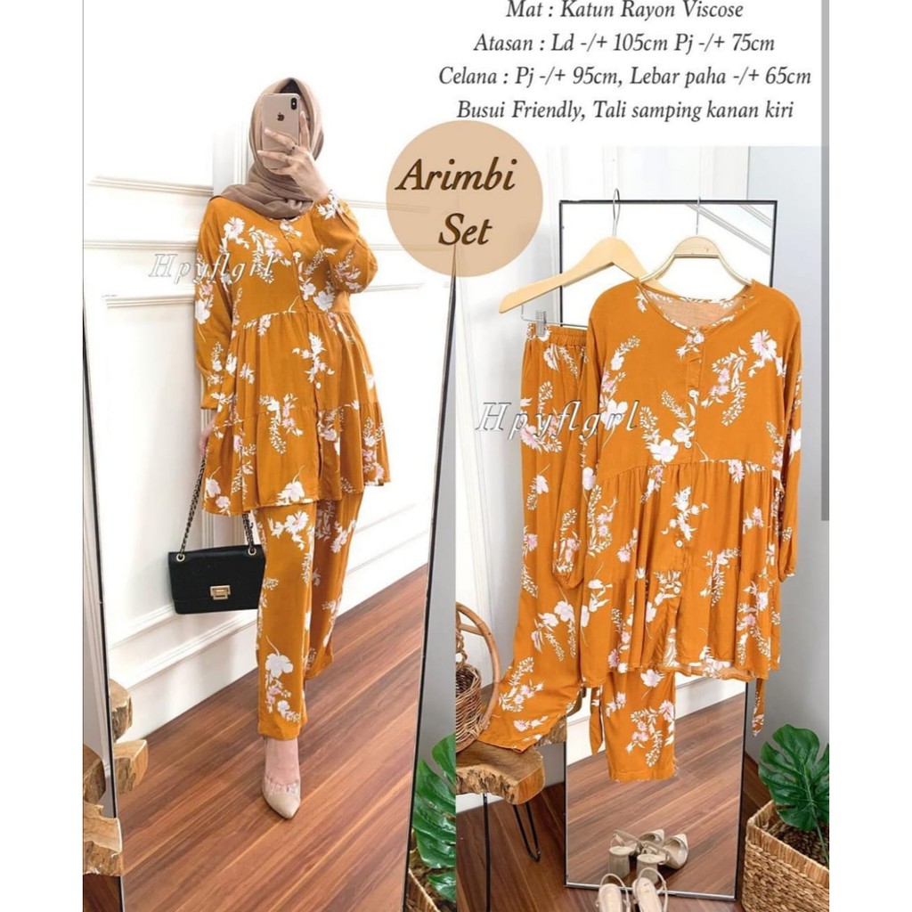 ( 1KG MUAT 5PCS ) ARIMBI SET GAMIS MOTIF RAYON VISCOSE