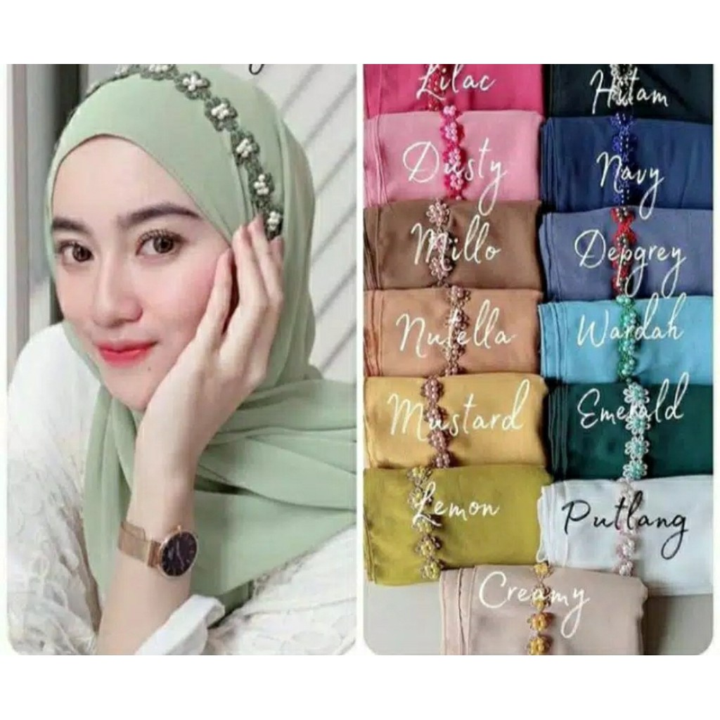 (1KG MUAT 13pcs) CROWN MUTIARA PASHMINA TALI INSTANT NON PET HIJAB JILBAB KHIMAR KERUDUNG BERGO