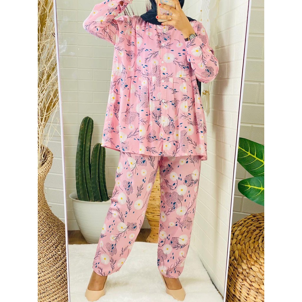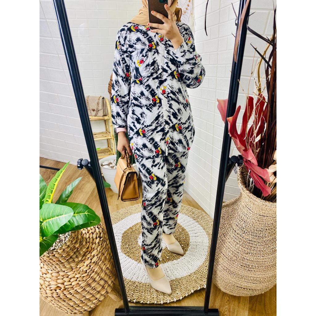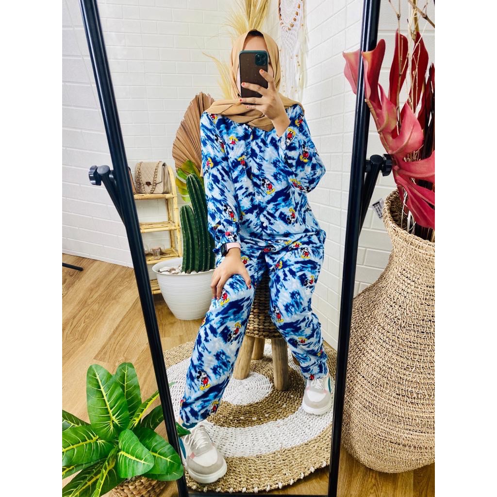 (1KG=4PCS) SETELAN PIYAMA KARTUN KAOS PENDEK CELANA PANJANG SETELAN