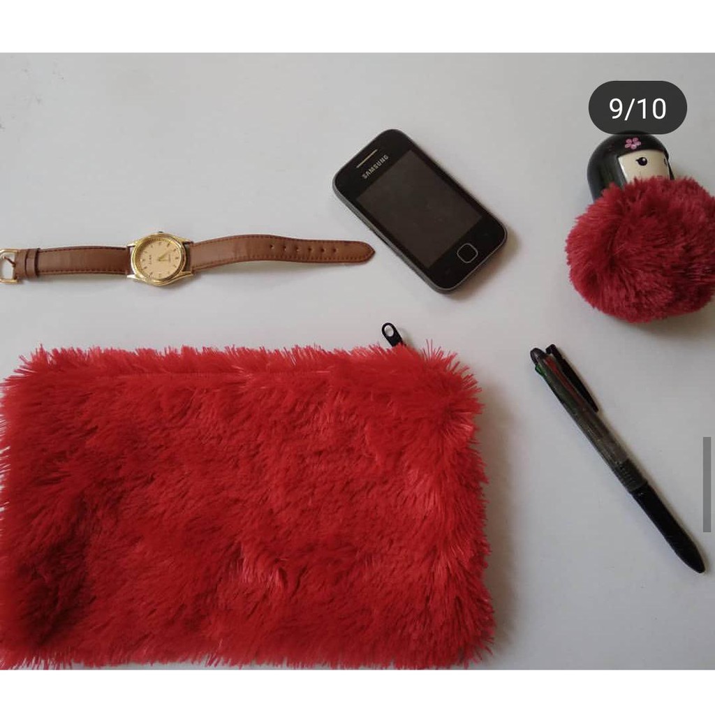 (1KG =13PCS ) DOMPET MAKE UP & HANDPHONE BULU POLOS RASFUR VELBOA