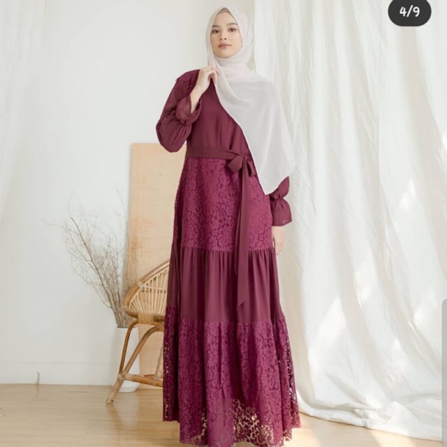 GAMIS FIONA BROKAT KEBAYA DRESS MOSCREPE PREMIUM