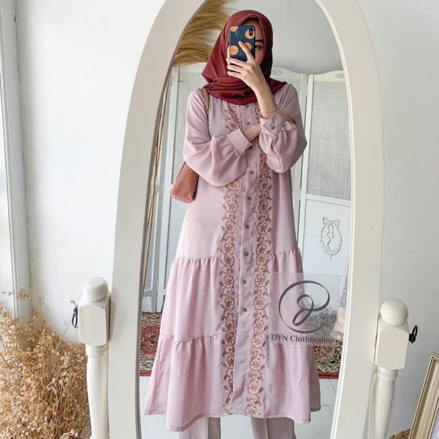TUNIK SERLIFA BORDIR FULL KANCING BUSUI BUMIL DRESS MOSCREPE PREMIUM