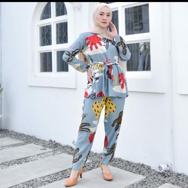 SETELAN BLOUSE BRENDA KAKTUS ONE SET CELANA BUSUI BUMIL RAYON VISCOSE