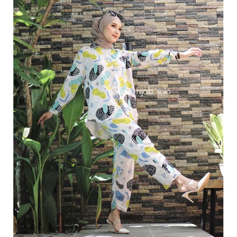 ONE SET ALMETA ETNIK DAILY KEMEJA SET WANITA RAYON VISCOSE