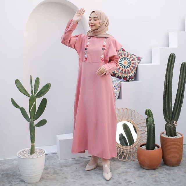 GAMIS FLORISA BORDIR BUNGA DRESS MOSCREPE PREMIUM