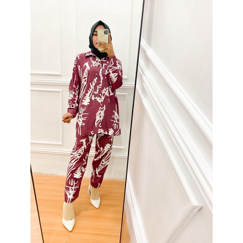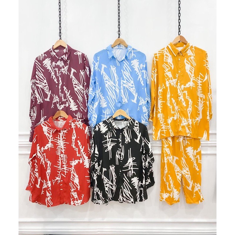 ONE SET REISYA DAILY KEMEJA SET WANITA RAYON VISCOSE