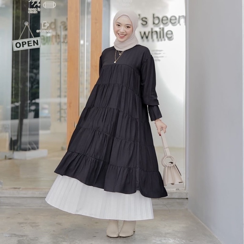 GAMIS ROSA PLISKET DRESS MOSCREPE PREMIUM