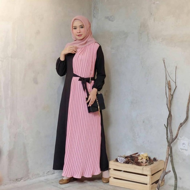 GAMIS ROSA PLISKET DRESS MOSCREPE PREMIUM